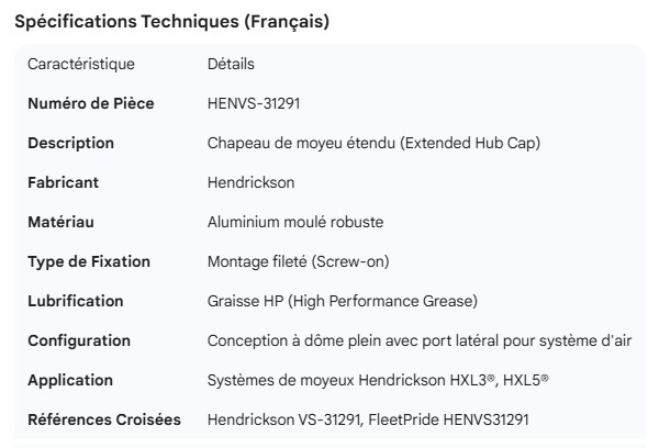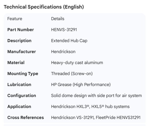 HENDRICKSON HUB CAP EXTENDED HP GREASE