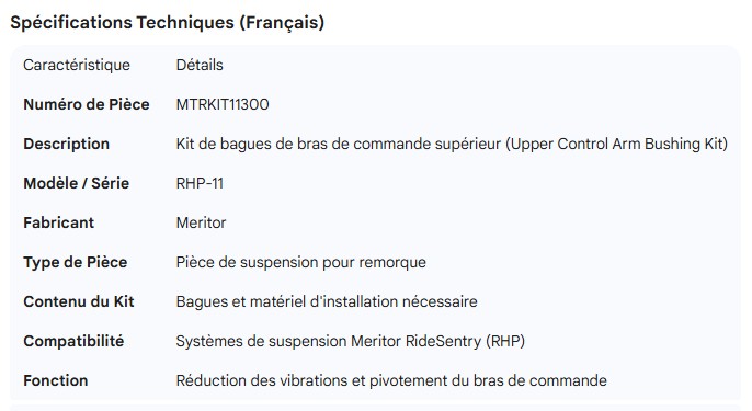 MERITOR UPPER CTRL ARM BUSHING KIT RHP-11