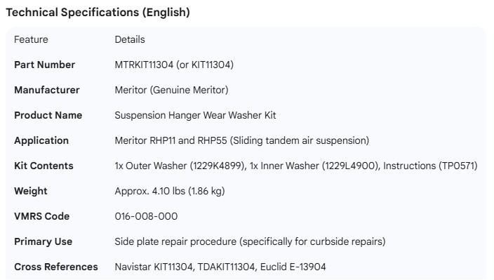 MERITOR HANGER WASHER KIT RHP-11
