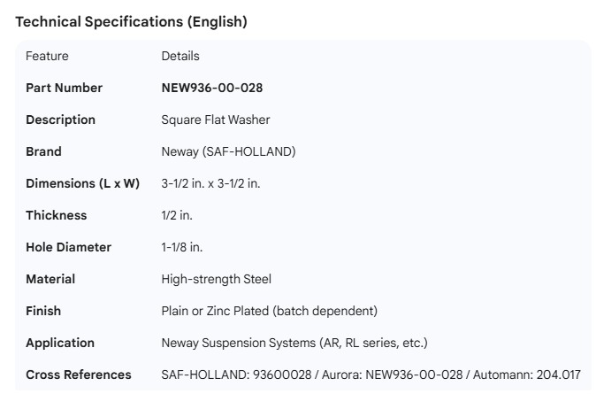 NEWAY SQUARE FLAT WASHER