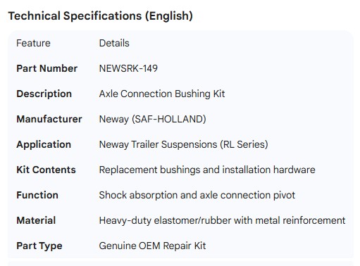 NEWAY AXLE CONNECTION BUSHING KIT