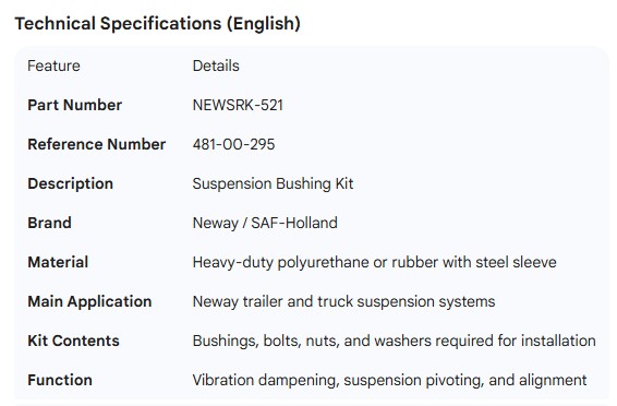 NEWAY BUSHING KIT 481-00-295