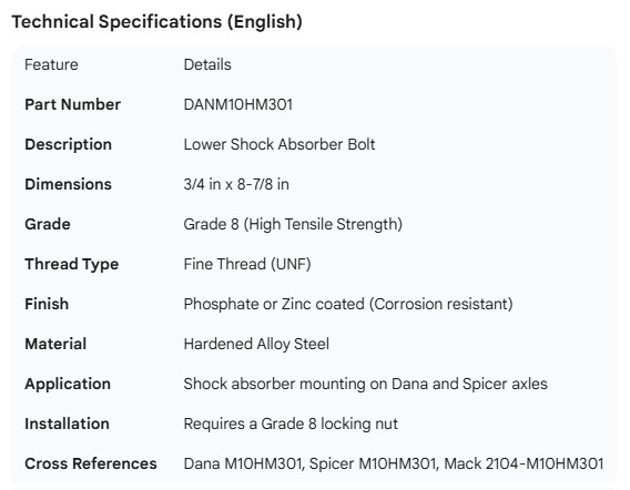 DANA LOWER SHOCK BOLT (3/4" X 8-7/8")