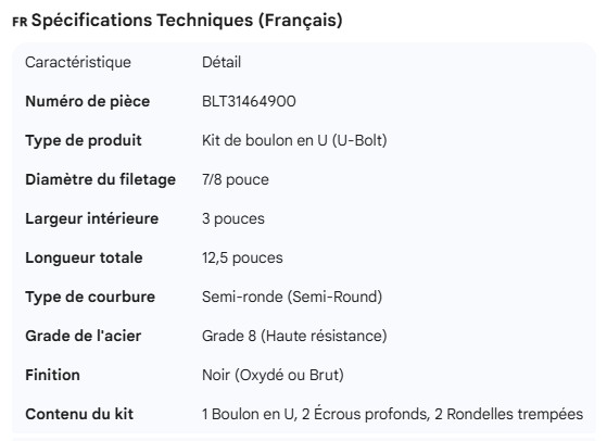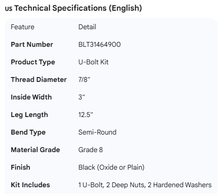 U-BOLT KIT 7/8" X 3" X 12.5"