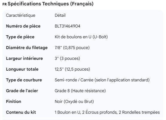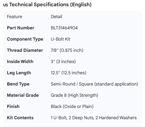 U-BOLT KIT 7/8" X 3" X 14.5"