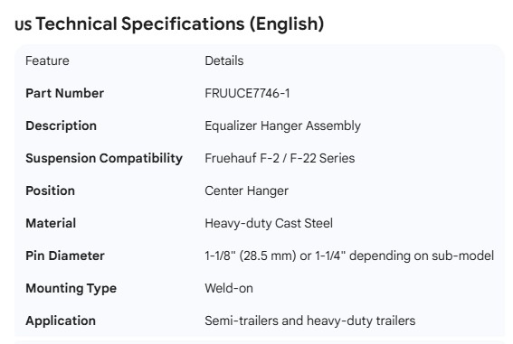 FRUEHAUF F-2 EQUALIZER HANGER ASSY.