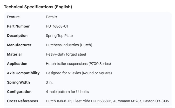 HUTCH SPRING TOP PLATE