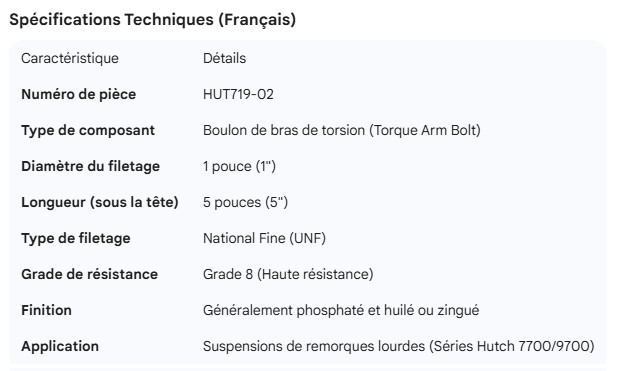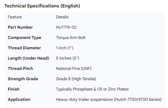 HUTCH TORQUE ARM BOLT 1" X 5"