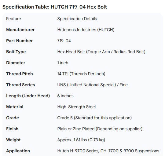 HUTCH HEX BOLT 1-14UNS X 6"