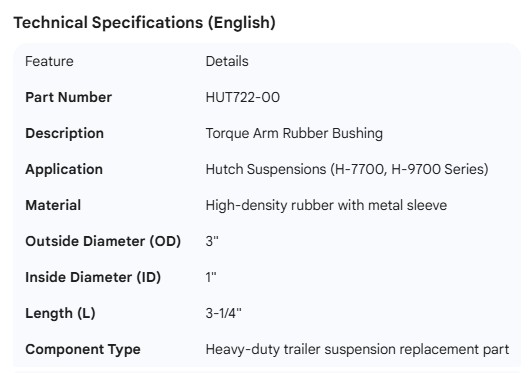 HUTCH TORQUE ARM RUBBER BUSHING
