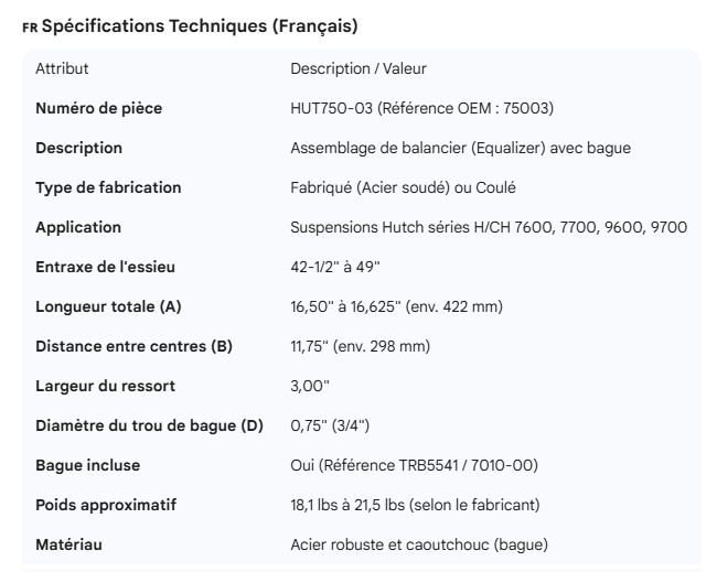 HUTCH EQUALIZER ASSEMBLY WITH BUSHING