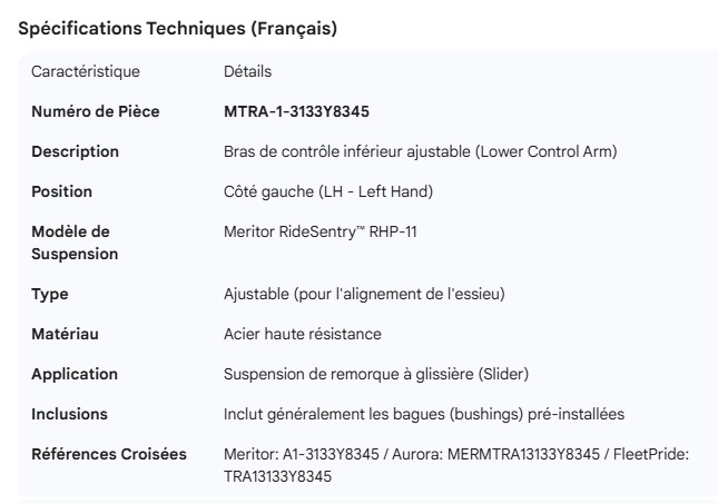 MERITOR LOWER CONTROL ARM ADJUSTABLE LH RHP-11