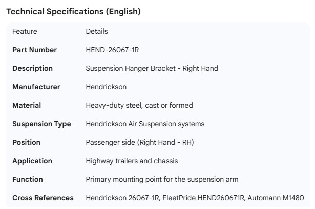 HENDRICKSON SUSPENSION HANGER BRACKET RIGHT