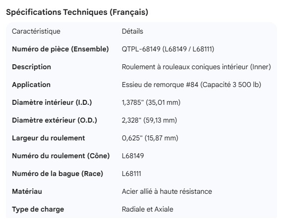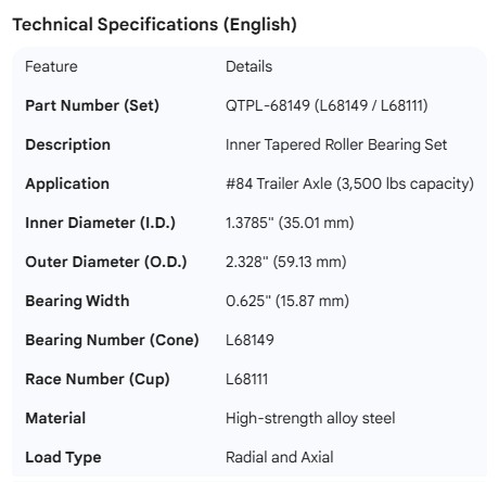 AXLE SPINDLE BEARING 1.3785" I.D. #84 INNER, L-68111 RACE