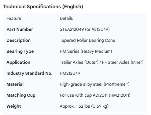 STEMCO SPINDLE BEARING