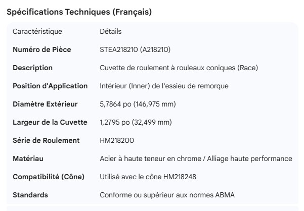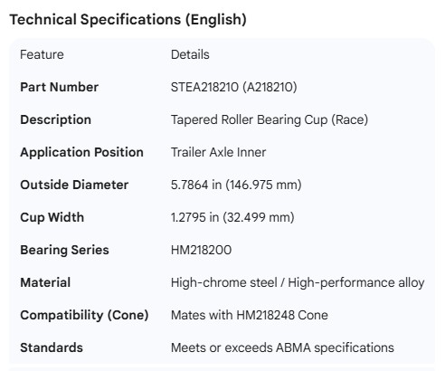 STEMCO SPINDLE BEARING CUP