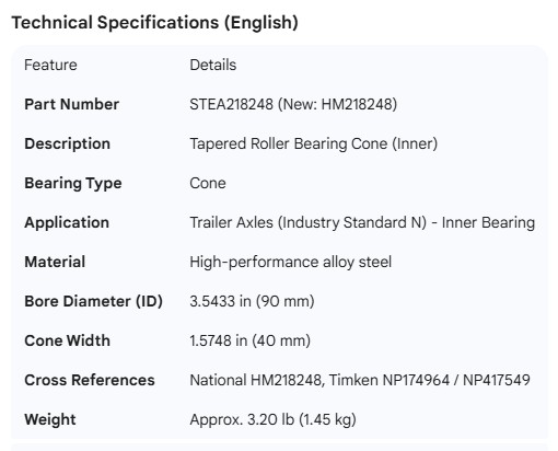 STEMCO SPINDLE BEARING