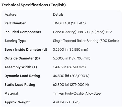 TIMKEN BEARING SET 572/580