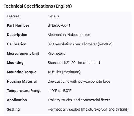 STEMCO HUBODOMETER 320 REV PER KM