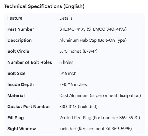 STEMCO HUB CAP
