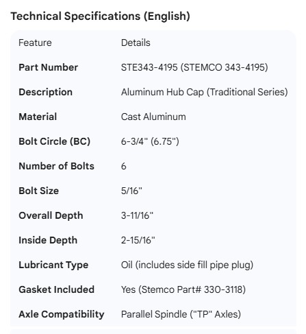 STEMCO HUB CAP