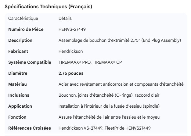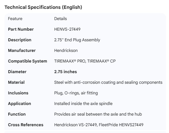 HENDRICKSON TIREMAAX 2.75" END PLUG ASSEMBLY