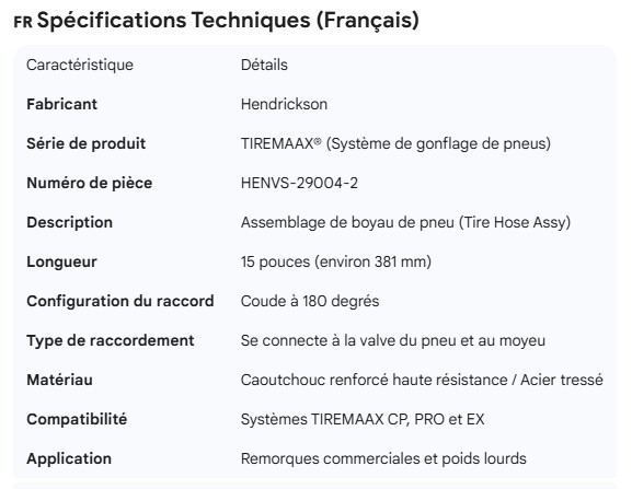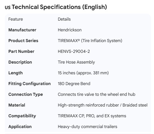 HENDRICKSON TIREMAAX TIRE HOSE ASSY 180 DEGREE 15"