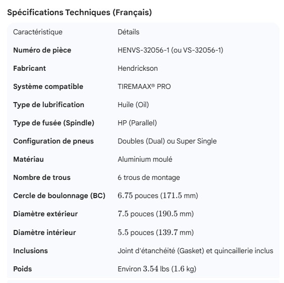 HENDRICKSON TIREMAAX HUBCAP HLX3 HP OIL DUAL