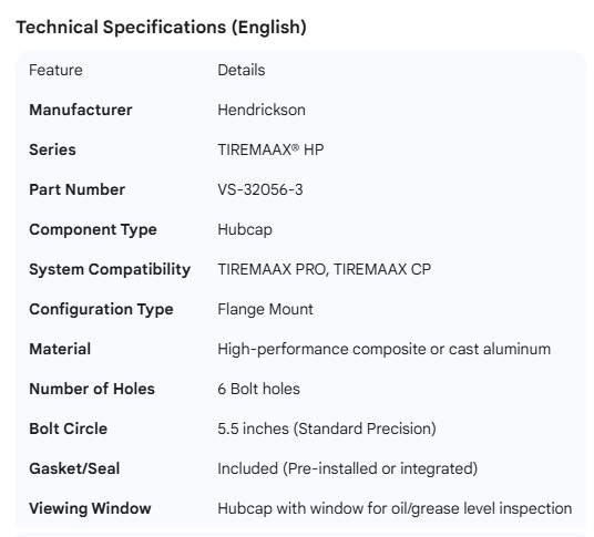 HENDRICKSON TIREMAAX HUBCAP HP