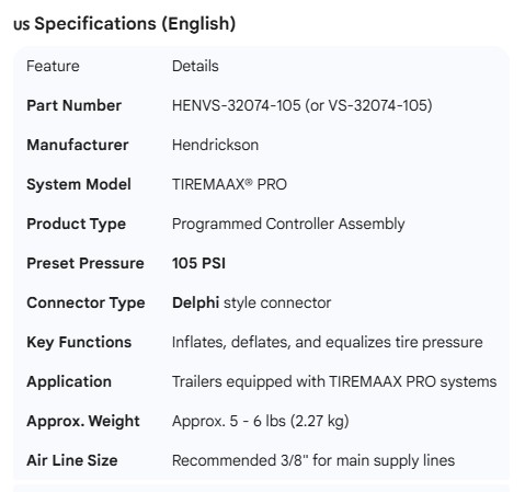 HENDRICKSON TIREMAAX PRO CONTROLLER ASSY 105 PSI
