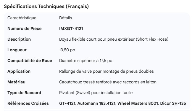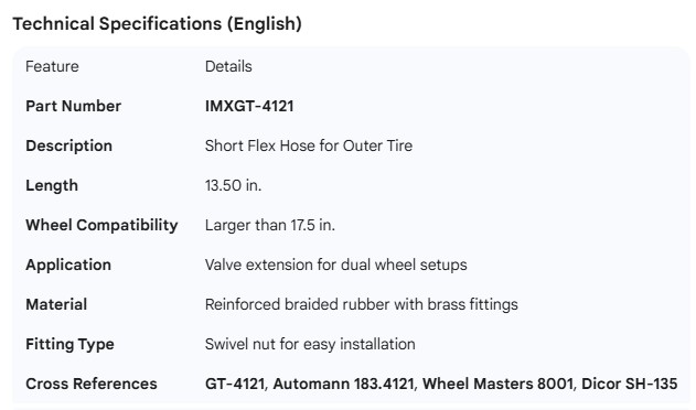 SHORT FLEX HOSE 13.50" OUTER TIRE LARGER THAN 17.5"