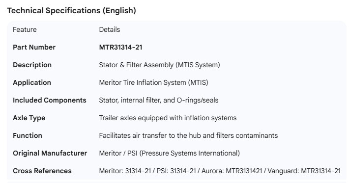 MERITOR STATOR & FILTER