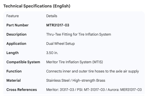 MERITOR THRU TEE 3.50" DUAL WHEEL
