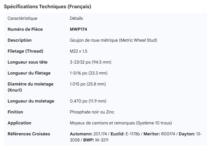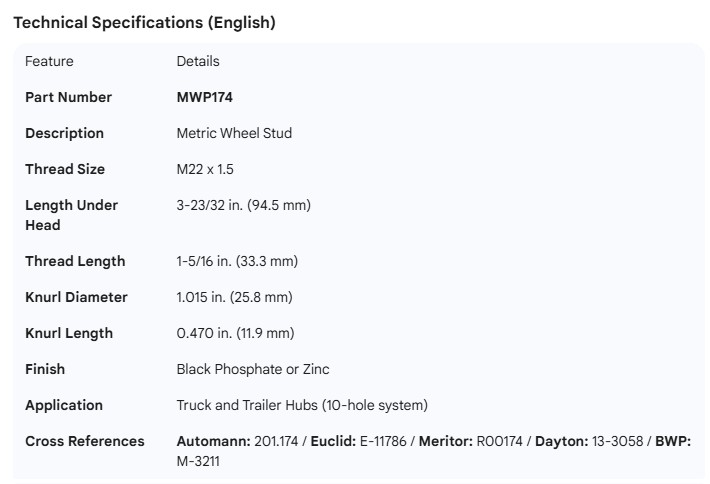 METRIC WHEEL STUD 1-5/16