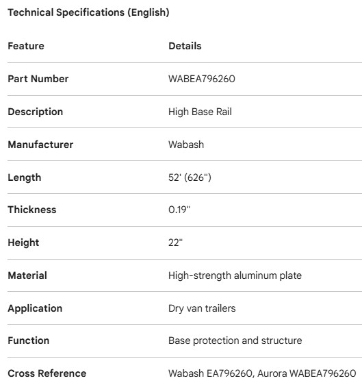 LONGERON DU BAS WABASH DURAPLATE