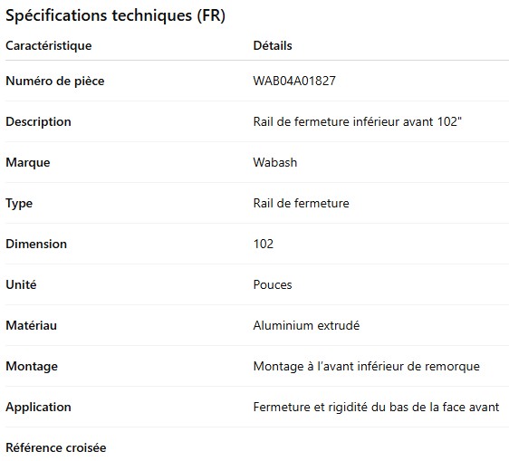 LONGERON DU BAS AVANT WABASH