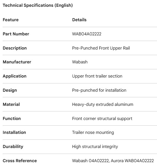 LONGERON SUPÉRIEUR AVANT WABASH