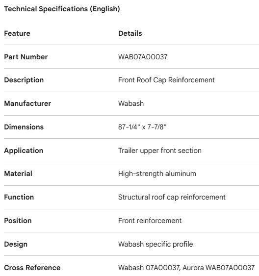 RENFORT AVANT DE TOIT EN ALUMINIUM