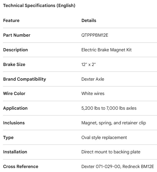 AIMANT DE FREIN ÉLECTRIQUE 12" STYLE DEXTER