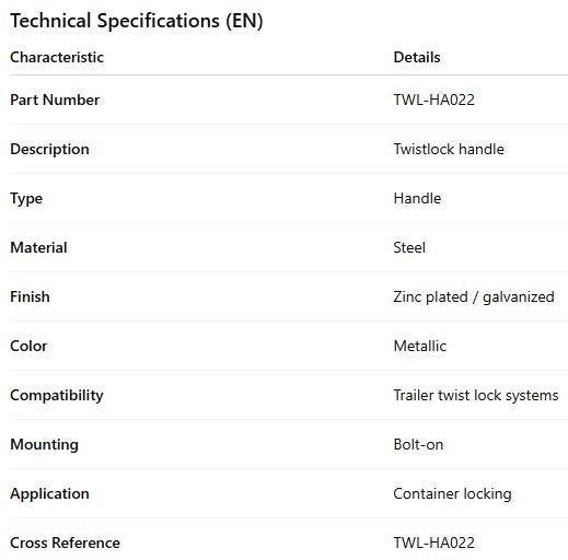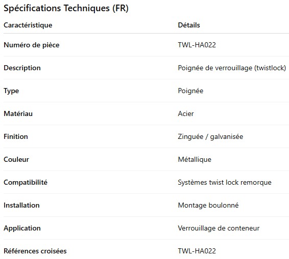 POIGNÉE DE BARRURE DE CONTENEUR