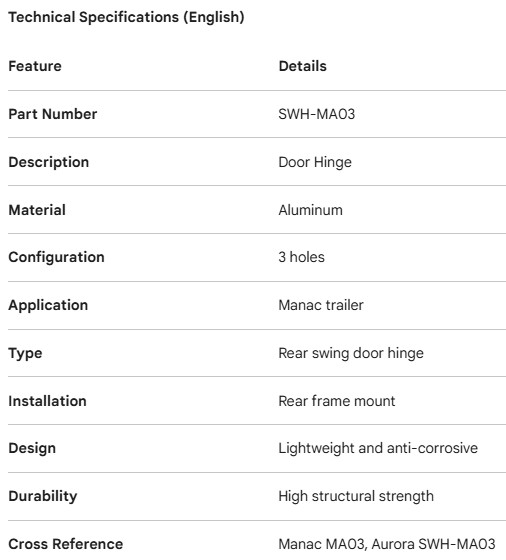 MANAC - PENTURE DE PORTE - ALUM 3 TROUS